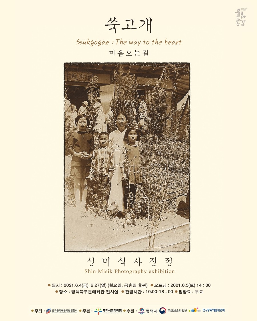 평택시문화재단(이사장 정장선)은 평택출신 유명 사진작가 신미식의 사진전 <쑥고개 : 마음 오는 길>을 오늘 6월 4일부터 6월 27일까지 평택시 북부문예회관 전시실에서 ..