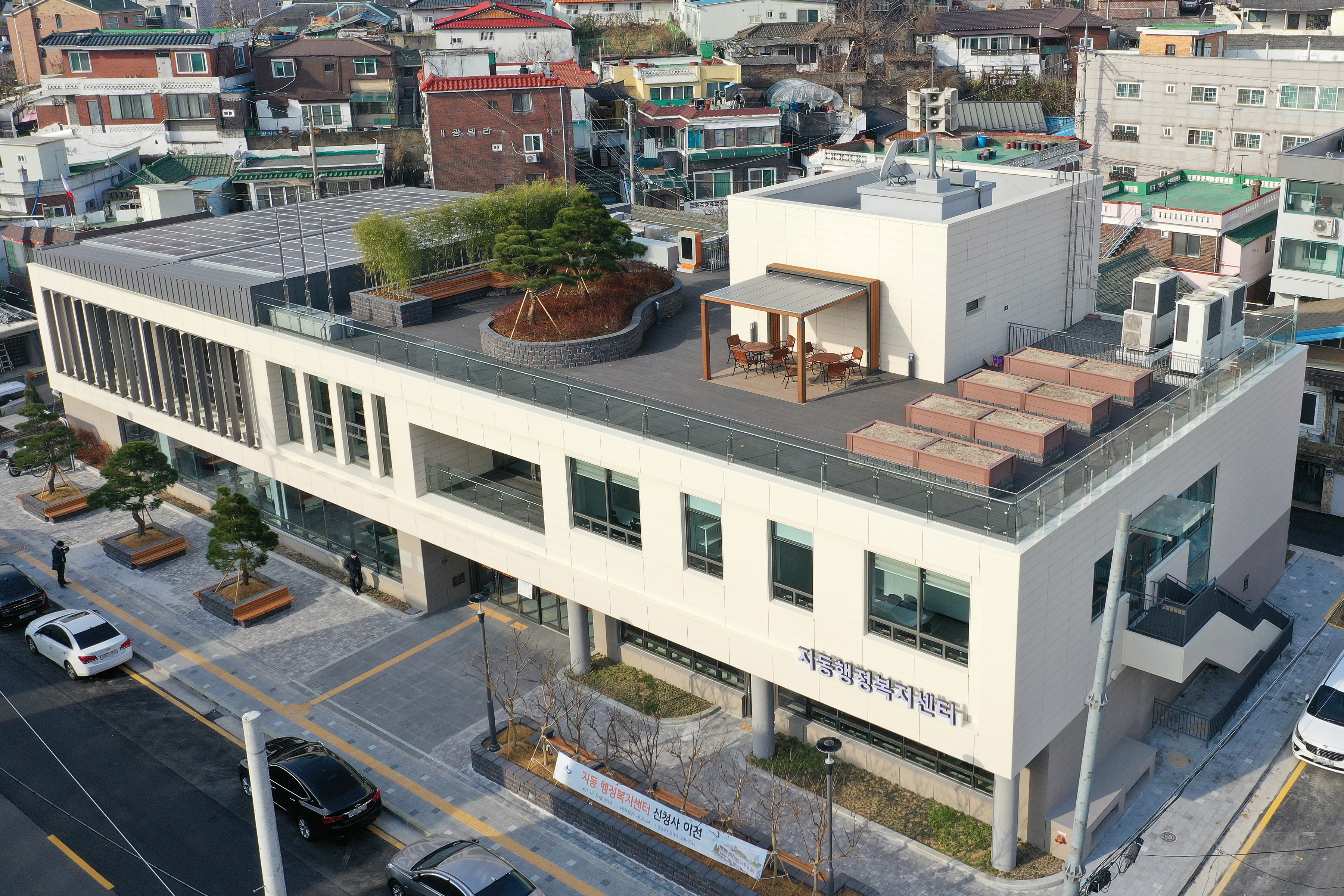 수원시 팔달구 지동의 오래된 건축물들 사이에 눈길을 확 사로잡는 커다란 2층 신축 건물이 들어섰다. 전체적으로 노란 베이지빛 외관과 투명한 유리창이 따뜻하면서도 개방적인 느낌과 안..