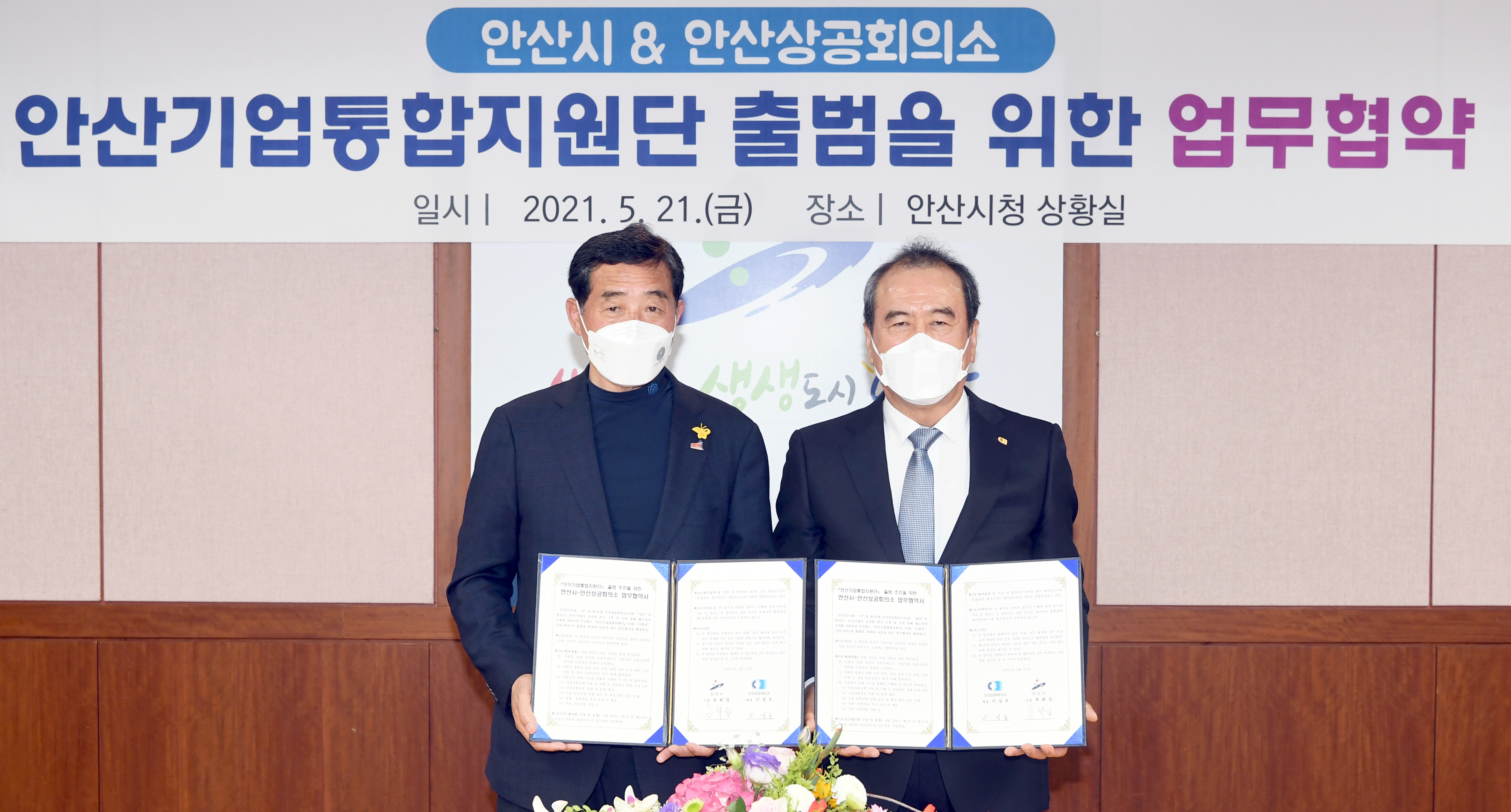 안산시(시장 윤화섭)는 21일 전국 기초지자체로는 처음으로 기업지원 역량 및 효율성을 강화하기 위해 안산상공회의소와 업무협약을 체결하고 ‘안산기업통합지원단’을 출범한다고 밝혔다. ..