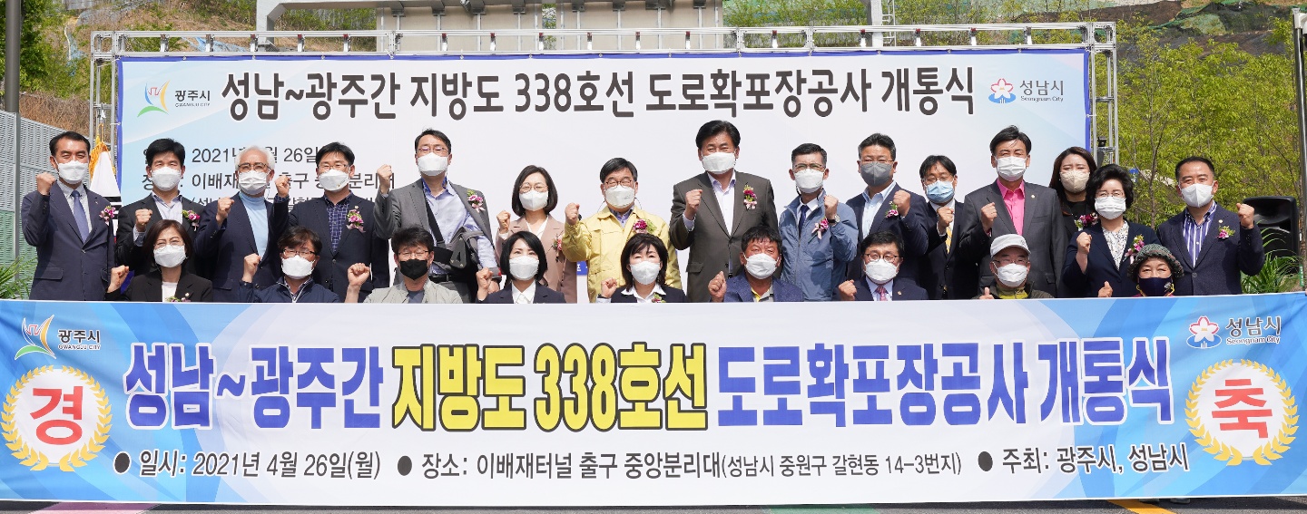 광주시는 26일 성남~광주간 지방도338호선 도로확포장 공사의 개통식을 이배재터널에서 개최했다고 밝혔다. 이배재터널은 광주시 목현동과 성남시 중원구 상대원동을 연결하는 전체 2.2..